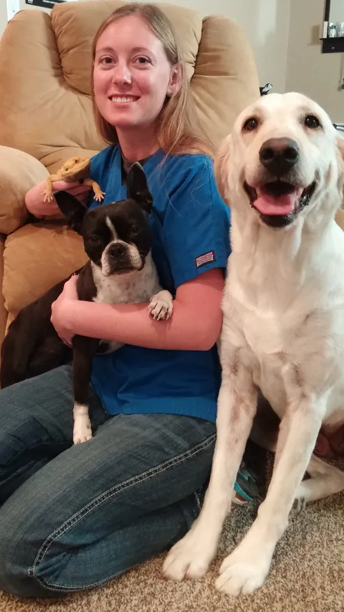 I graduated from Globe University in 2014 with a degree in Veterinary Technology. I have 2 dogs (Maggie & Charlotte), 2 cats (Cinnamon & Trouble), a bearded dragon (Godzilla), and a horse (Kasey). I enjoy camping, riding horse, and spending time with loved ones.